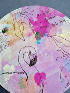 The artwork radiates lightness and quiet confidence: the flamingo stands tall in gentle rose tones, embodying elegance, authenticity, and the courage to simply be.