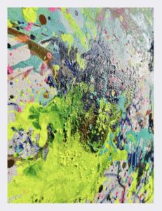The painting comes mounted in a minimal, removable wooden frame, allowing flexible display. Its dynamic colors and textures create a sense of depth, playfulness, and inner resonance.