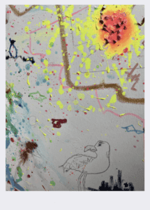 A large, vibrant piece measuring 140 × 100 cm. The composition is wild and exuberant, made with acrylics, oil paints, oil pastels, and graphite. The work was sprayed, thrown, and painted, capturing a sense of spontaneity, energy, and joyful chaos. Subtle visual elements include motifs inspired by the furniture I encountered on Ibiza, adding a playful, personal touch. The palette is bold and colorful, designed to bring brightness, warmth, and a sense of sunshine to any space.