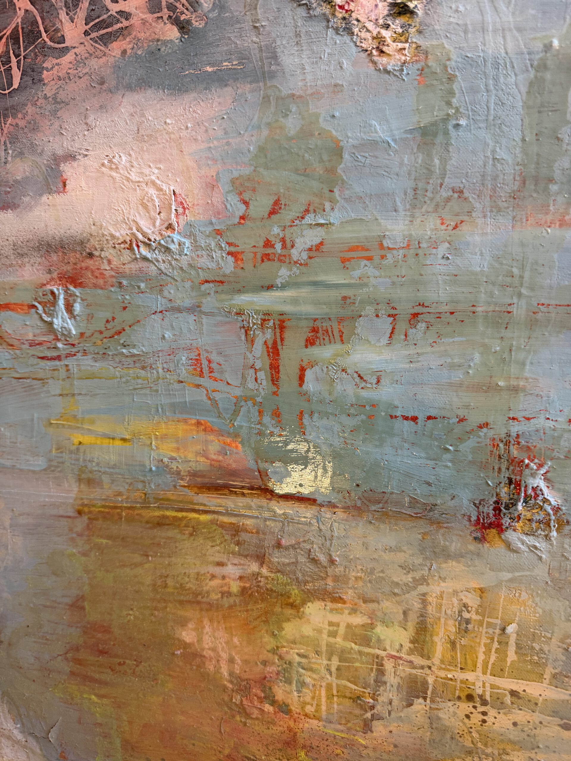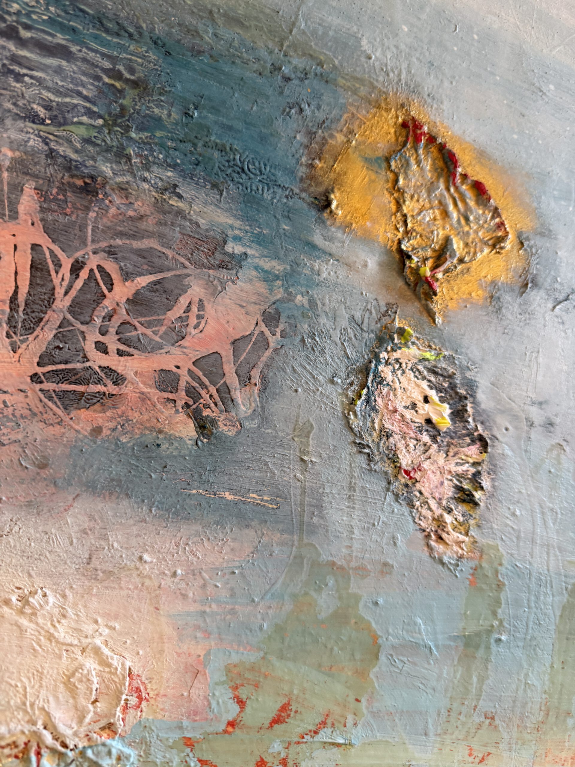 • Medium: Lacquer, oil, acrylic, gold particles, mixed media