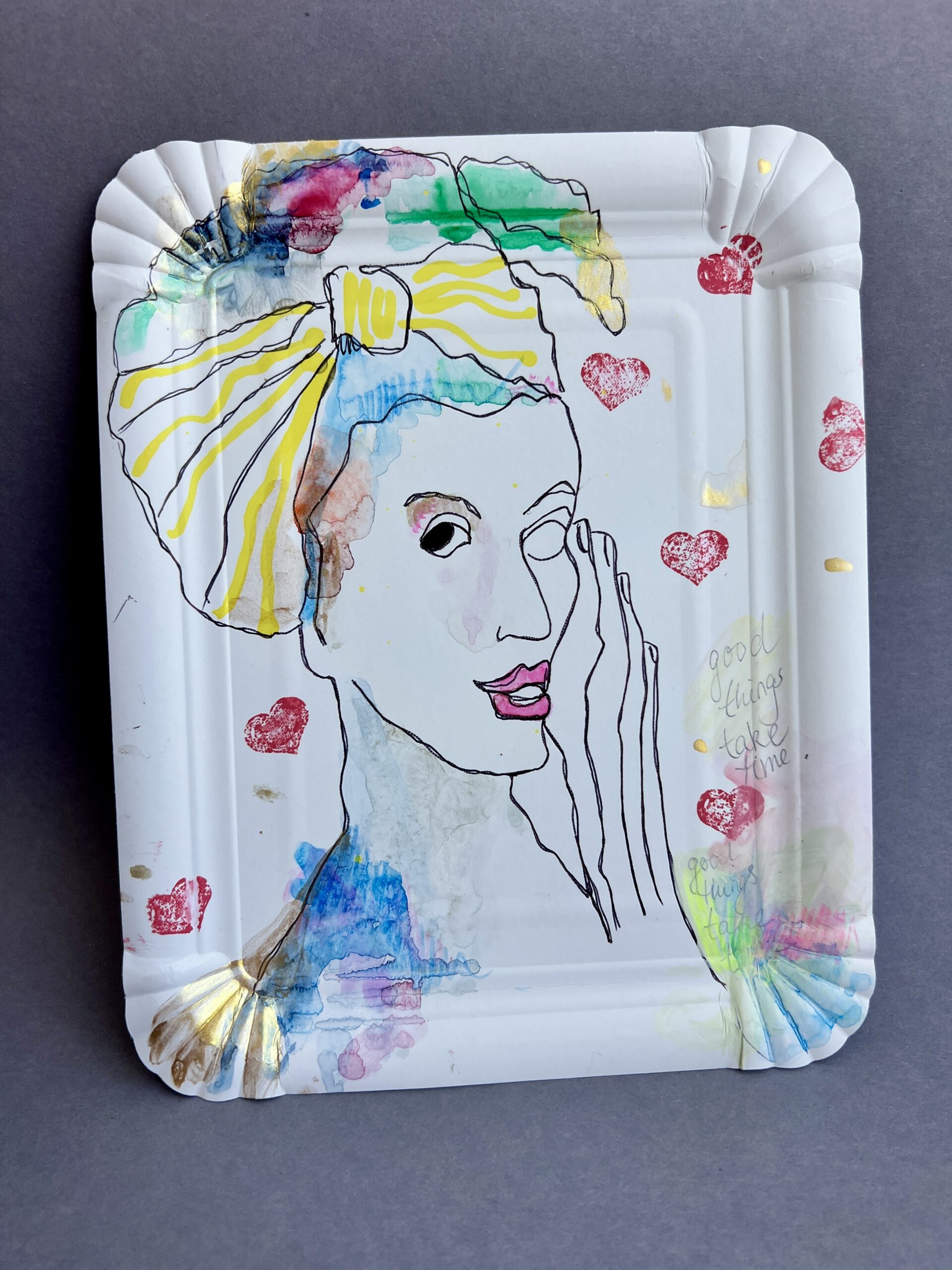 A striking, intimate piece measuring 12 × 17.5 cm. The work originates from a photograph taken in Brazil over 25 years ago, which has now been transformed through layers of graphite, acrylics, and textile elements. The interplay of materials adds depth, texture, and a tactile quality, highlighting both strength and vulnerability. The composition reflects autonomy, presence, and the enduring assertion of self, inviting the viewer to connect with themes of ownership, identity, and empowerment.