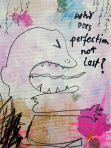 At its center: a small, wonderfully odd little creature — imperfect, adorable, and unapologetically itself. With a humorous twist, the tiny monster is shown mid-vomit, transforming imperfection into charm, honesty, and creative freedom.