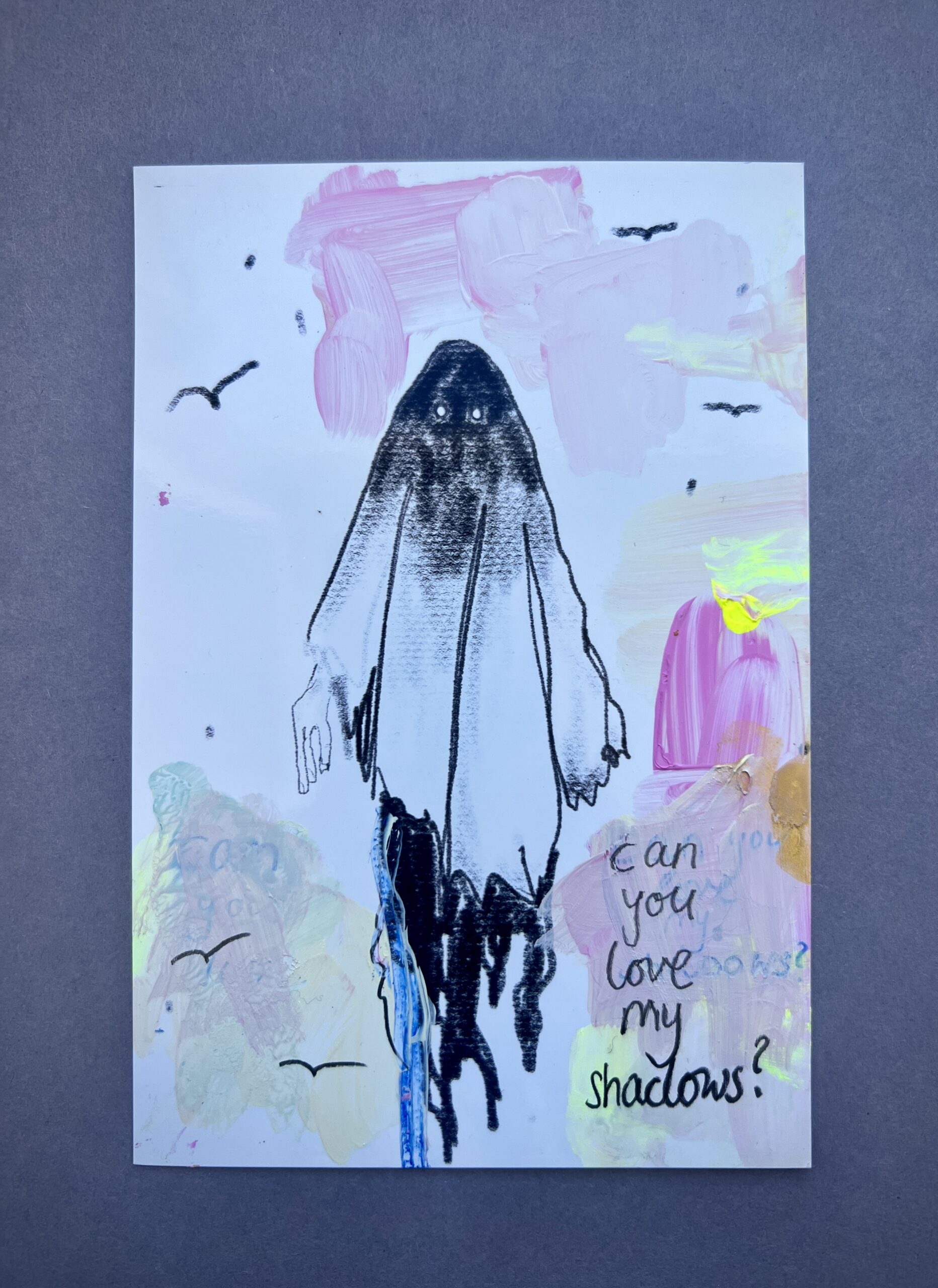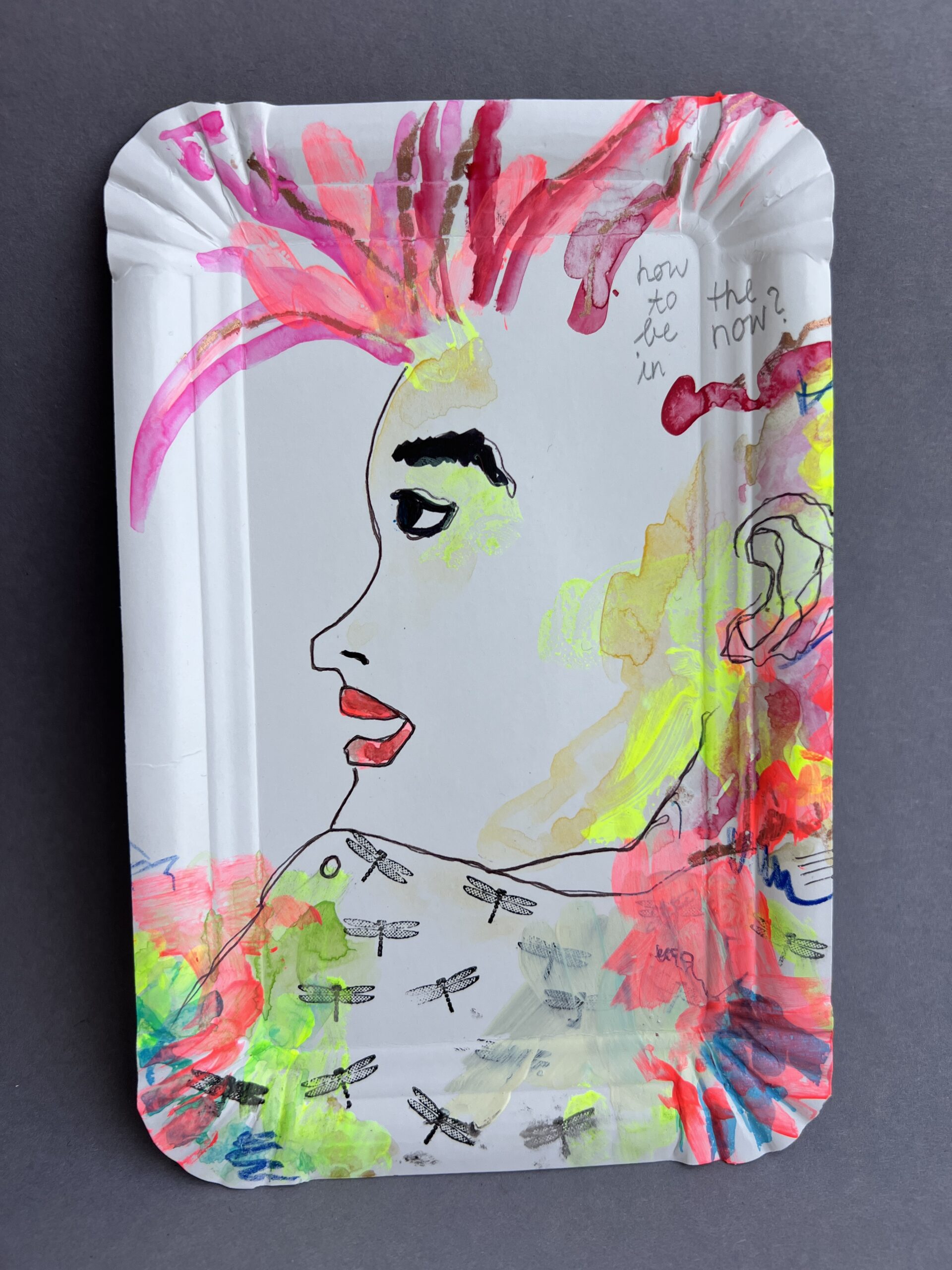 This is a unique, one-of-a-kind original artwork created with mixed media on paper.